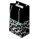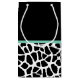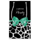 A girly black and white giraffe print gift bag with a pretty mint green ribbon tied into a cute bow. Personalise this trendy animal print design by adding the name of the party girl. Flat printed image, not actual bow.