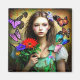 Pretty Girl with Red Flowers and Butterflies Magnet