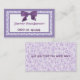 Pretty mummy or children calling card, enclosure card done in a purple and white polka dot, with a big pretty bow. Customise the front and back to suit your needs, add more text too if you want.