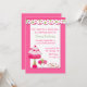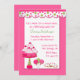 Sweet girl's birthday party invitation done with a pink background, and a white text area layered, on top of the background. Graphics of a pink, green, and white scalloped edge at the top and yummy pretty cupcakes, cookies and lollypops decorate the bottom party of the invitation. Text in pink and green is fully customisable for your party needs. Great invitation to any little girl's birthday party.