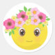 This girly and cute emoji is wearing flowers in her hair and is so pretty!