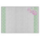 A very pretty Glass Cutting Board with two bright pink roses and a border of polka dots in blue and white on a soft green background. Part of the Posh & Painterly, 'Summer Days' collection.