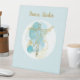 Pretty tabletop sign features gold line art style ballerina with abstract blue watercolor and gold background.  Customise with name or other business details.