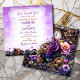 A unique floral gothic themed steampunk wedding invitation. Purple, gold, copper and black hues with metal gears, flowers, roses, keys and other fun steampunk elements.
