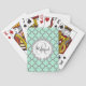 Pretty Green and Grey Quatrefoil Monogram Laurel Playing Cards