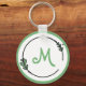 Pretty metal round key chain done in white, with a green border and a decorative black and green circle, with a green one letter monogram. Customise this to make a great gift for any occasion.