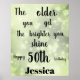 Pretty Green Sparkle personalised 50th Birthday Add name Poster.