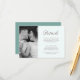 Vibrant cyan green with pretty script trendy wedding guest details photo card. Please view this collection for trendy coordinating invitations and mailing accessories.