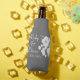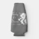 Beautiful, modern and elegant wedding bottle / can cooler design features pretty white flowers with customisable white text on darker grey background