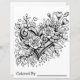 Heart and flowers tribal style adult colouring page.
