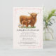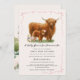 Celebrate the mama-to-be with this charming Highland cow baby shower invitation, designed with a sweet “wee coo” and soft rustic florals inspired by the Scottish countryside. The hand-painted illustration adds a warm and whimsical touch, perfect for a cozy shower theme.