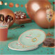 Christmas party paper plates done in pale green, with graphics of gold accents and two pretty Christmas tree ornaments. Green custom text is ready to personalise to suit your party needs.