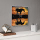 A beautiful horse clock with a southwestern colored sky all reflected in a still pond. A beautiful clock.