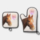 Pretty Horse Animal Equestrian Stables Monogram Oven Mitt & Pot Holder Set