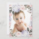 This beautiful and trendy Baptism invitation features lovely, feminine hydrangea flowers in pink and purple, with a faux gold cross and frame. The back of the invitation features a personal photo of your baby, with a pretty floral watercolor frame.
