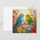 A pretty blank notecard for a friend or family member who loves parakeets! On the front is an impasto painting style blue and green parakeets and flowers.