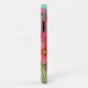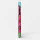 A stylised, vibrant floral painting of cosmos in many shades of pink in a glass vase on a turquoise background on an iPhone case by popular Lisa Lorenz