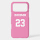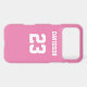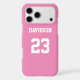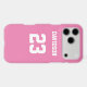 Add a name and number(s) to personalise this custom pink and white sports jersey inspired phone case. It is an excellent gift for a sports fan or athlete. The options to change the colour and font sizes are available.