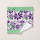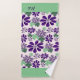 The Pretty Initials Green Purple Flower Pattern Bath Towel Set features your initials in a green stripe against a floral patterned background. It is part of the "Pink Butterfly: Bath, Beach, Yoga, Travel" collection.