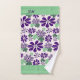 Pretty Initials Green Purple Flower Pattern Bath Towel Set