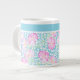 Pretty Jumbo Mug, Pink Roses, White Butterflies Large Coffee Mug