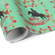 Pretty festive equestrian wrapping paper with a gift border and a pony jumping over the holiday greeting "Merry Christmas".