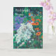 A pretty birthday card with 'Happy Birthday' in Welsh, and a flower bed full of scarlet Poppies, Snow in Summer and Blue Geranium; from an original oil pastel painting by Judy Adamson.