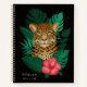 Pretty Jungle Leopard Floral Art | Black | Name Notebook