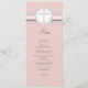A lovely pink and grey colour scheme features faux lace and a pretty cross design on this pretty menu card for your religious celebration reception.