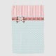 Pretty lady's golf towel done in a robin's egg blue with white polka dots, with a band of coral and white stripes, across the top of the towel.  Graphics of a cute scalloped ribbon and bow, runs between the two patterns.