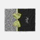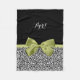 Personalise by adding the name of any girly girl to this pretty black and white leopard print fleece blanket with a cute spring green ribbon tied into an elegant bow. This chic and stylish animal print design is a flat printed image, and does not contain actual ribbon.