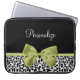 Pretty Leopard Print Spring Green Bow With Name Laptop Sleeve