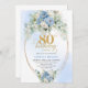 Pretty Light Blue Peonies Gold Frame 80th Birthday Invitation