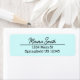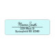 Return address labels in a minimalist style with black text on a light teal background. Customise by adding your name and address in the editing window.