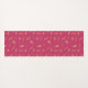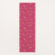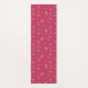 Elegant yoga mat pattern features golden floating feathers on magenta background