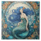 Pretty Mermaid Art Nouveau Art Deco Blue Ceramic Tile