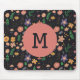 Pretty Modern Dark Floral Pattern Monogram Mouse Pad