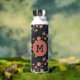 Pretty Modern Dark Floral Pattern Monogram Water Bottle