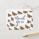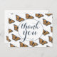 A simple and sweet thank you postcard featuring original artwork of a golden monarch butterfly, beautifully patterned behind decorative text.