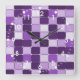 Pretty Mosaic Tile Pattern Purple Lilac Lavender Square Wall Clock