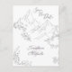 This mountain Save the Date wedding announcement postcard features a simple line drawing of mountains, branches and flowers. It is done in grey, white and a soft lilac ampersand.