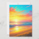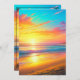 Pretty yellow, blue and pink sunset over a same beach seaside themed wedding invitation.