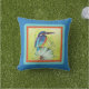 Pretty painted hummingbird on blue cushion