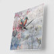 Pretty Painted Kingfishers and Flowers Square Wall Clock