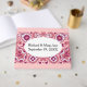 This guestbook for your events and parties has a pretty paisley pattern in shades of pink and white with big daisy type flowers and tear drop shapes on a light pink background. Customise your information in the white oval with the template.