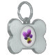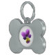 This awesome pet tag features a highly detailed photograph of a wild pansy flower, taken using macro photography. The flower is purple with a yellow centre.