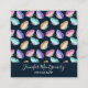 Square business card with a beautiful pattern. Watercolor butterflies, painted in pastel colours including pink, purple, blue, yellow and green. Dark blue watercolor background.