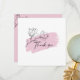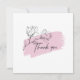This elegant flat thank you card features a sophisticated design that artfully combines simplicity with botanical beauty. The front of the card showcases a crisp white background, overlaid with a soft pastel pink brush stroke that adds a touch of colour without overwhelming the design. Atop this brush stroke rests an intricate black line art depiction of magnolia flowers, their delicate petals and leaves rendered with fine detail that suggests both grace and strength. The words “Thank you” are inscribed in a flowing script font, complementing the floral artwork with its own flourish.