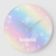 Pretty Pastel Rainbow Sparkle Monogram Girly Kids Large Clock