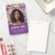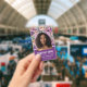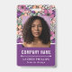 Colourful floral employee badge with a pattern of flowers in purple, pink, and peach. Eye catching vibrant business ID badge with lots of flowers in beautiful shades of purple and peach personalised with your photo, name, company name, and title. Trendy floral photo ID badge with flowers in shades of peach and purple and pink and your name and title against a purple background beneath an ID photo of you. Wow your clients with this gorgeous, unique floral ID badge with illustrations of pink flowers, purple flowers, and peach coloured flowers in a trendy and feminine design.